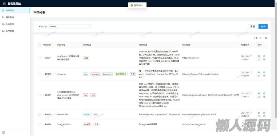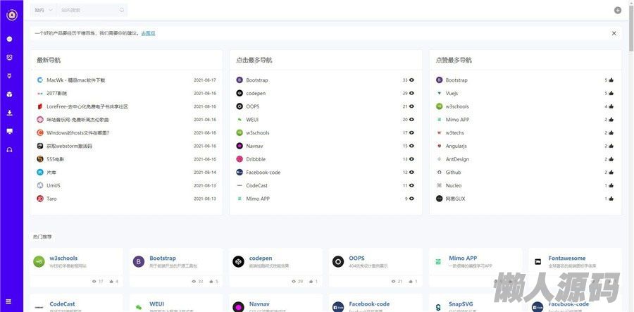 懒人源码 » 极客猿网址导航源码V3.0开源版_带后台