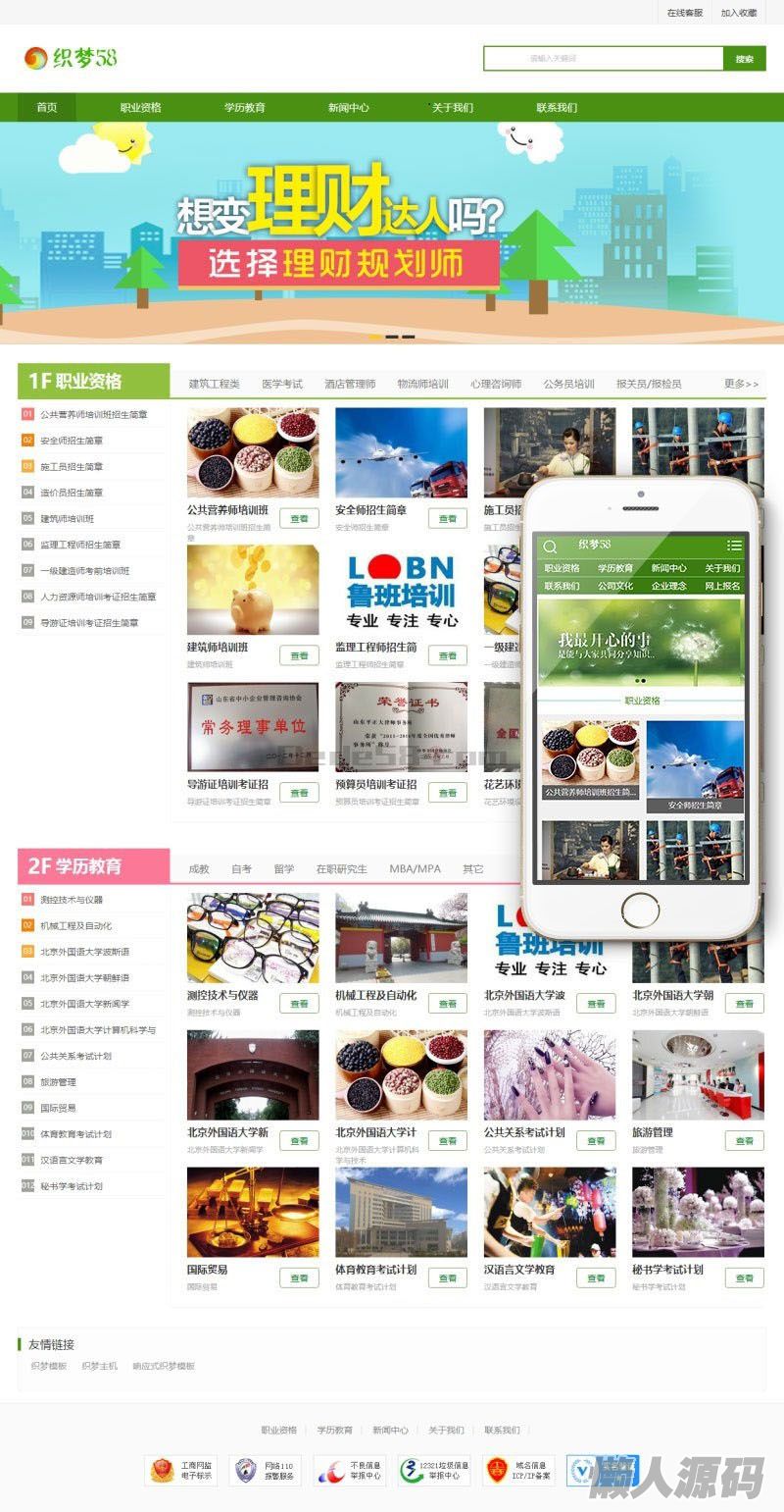 懒人源码 » 织梦dedecms绿色风格资格证书学校培训机构网站模板 带手机版