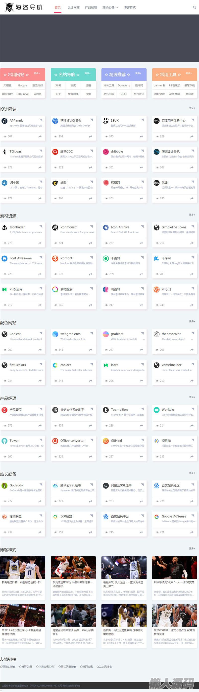 懒人源码 » Z-BlogPHP海盗导航主题模板zblog5_nav