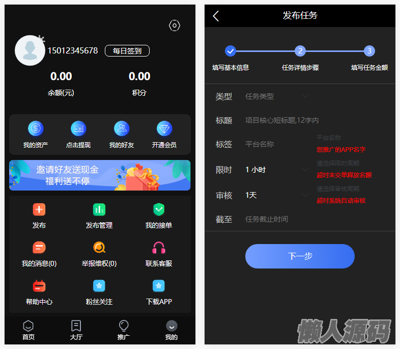 懒人源码 » 价值1500的全新UI众人帮任务帮PHP源码 悬赏任务抖音快手头条点赞源码 带三级分销可封装小程序