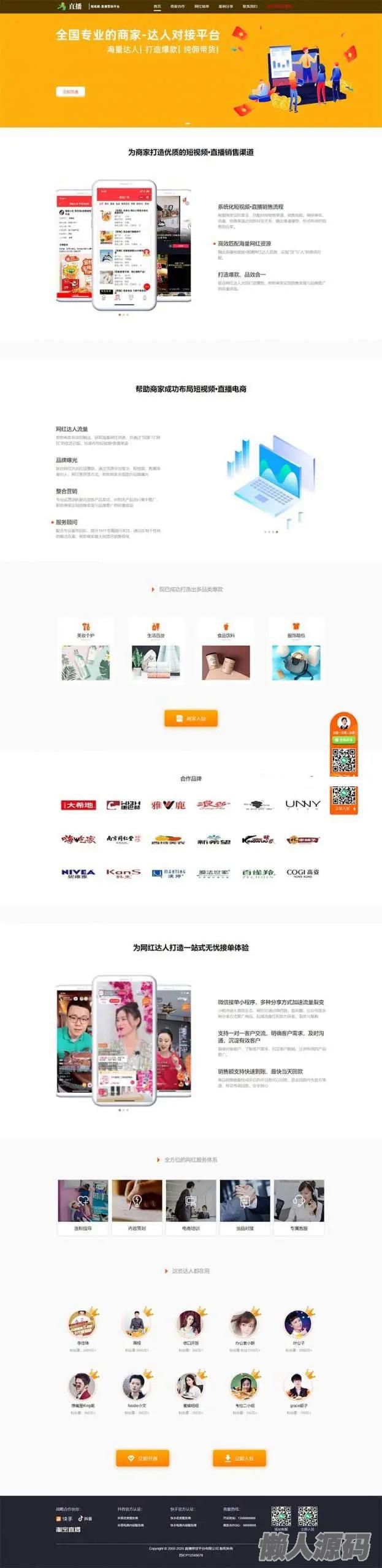 懒人源码 » 短视频直播带货单页面源码 自媒体落地页织梦模板(自适应手机版)