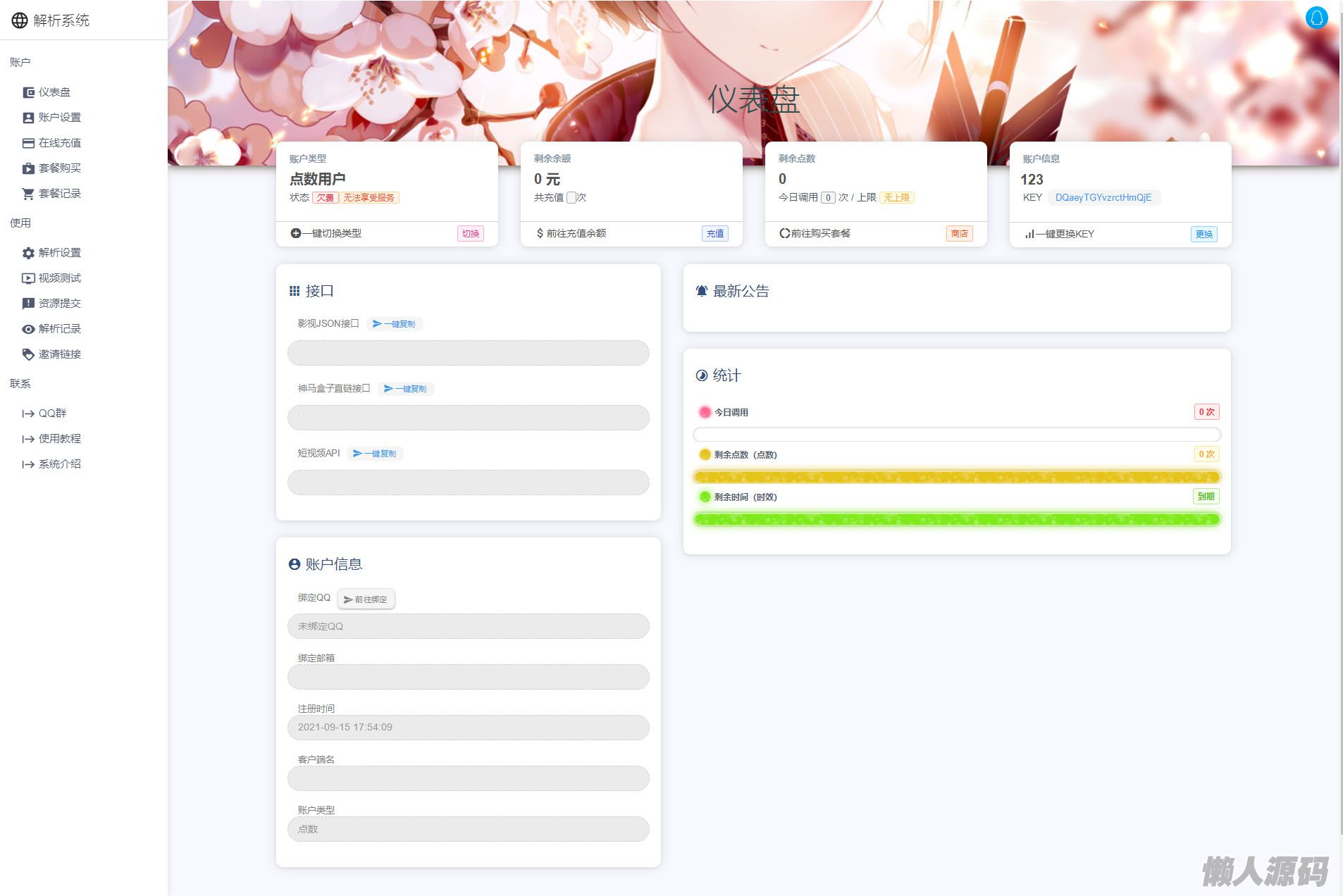 懒人源码 » 扶风解析系统/视频解析计费系统/视频智能解析