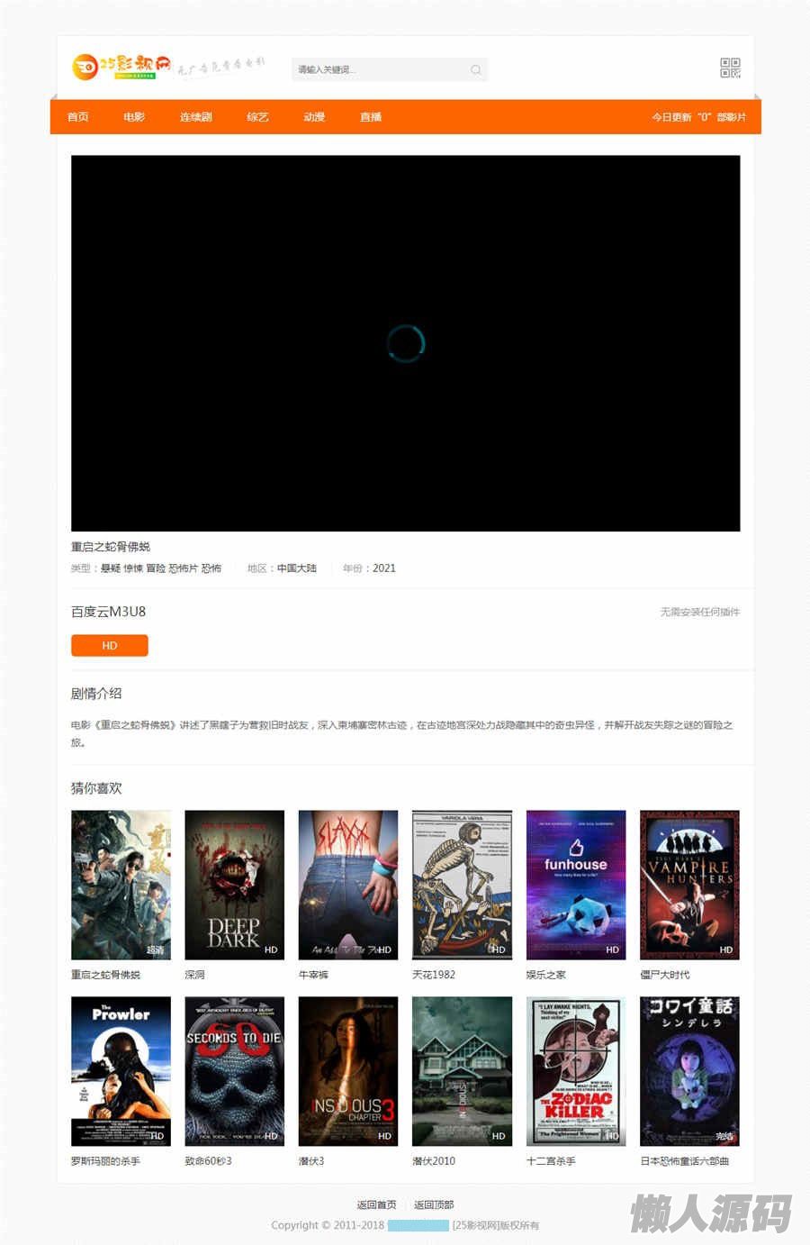 懒人源码 » 苹果CMSV10橙色自适应25影视网主题模板源码
