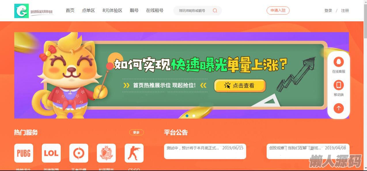 懒人源码 » 游戏陪玩平台美女约玩声优服务开黑下单源码