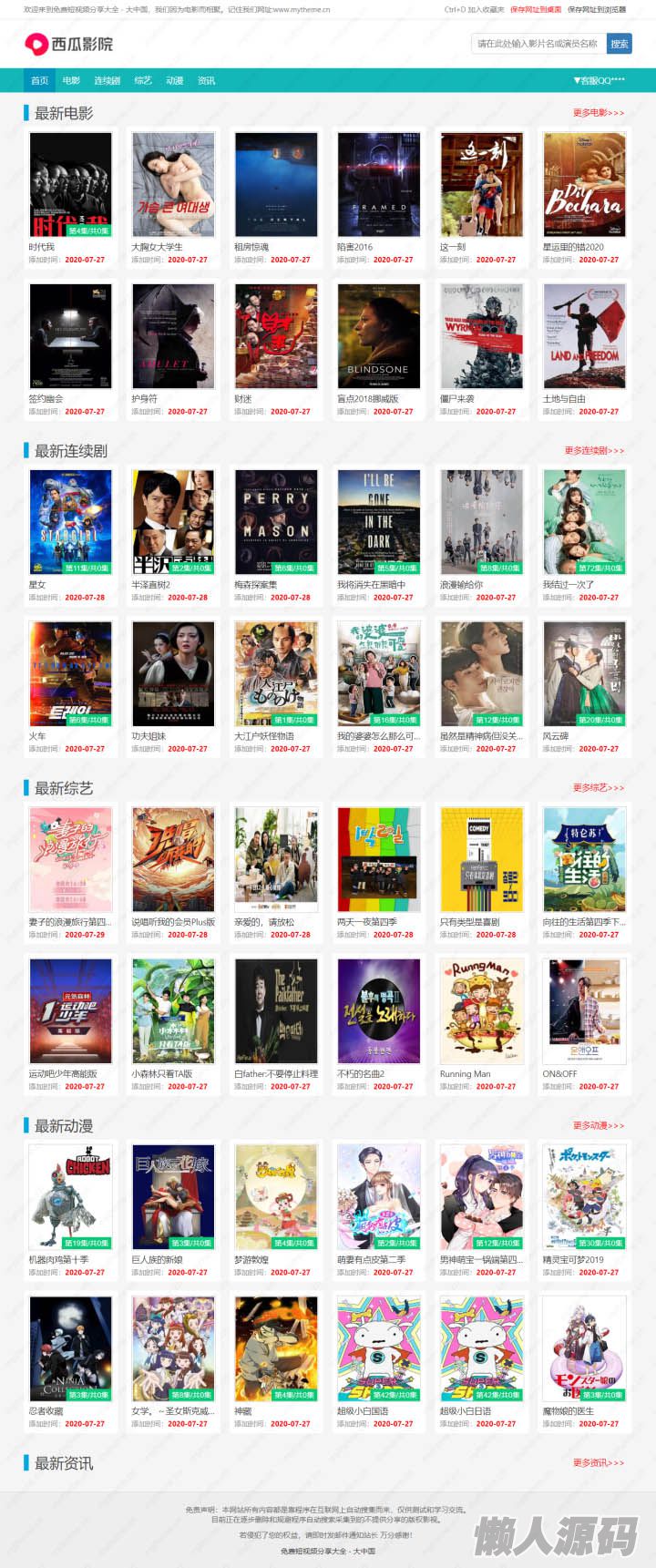 懒人源码 » 苹果cmsV10仿西瓜影院电脑手机影视自适应模板