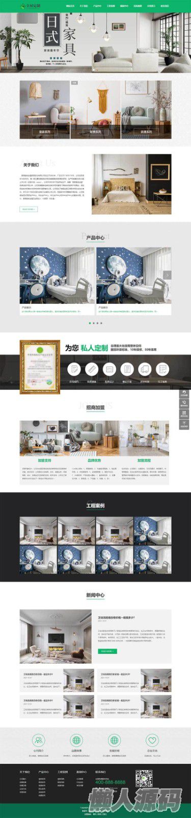 (自适应手机端)响应式全屋装修定制家居类网站 pbootcms 模板 绿色装修公司 网站源码 pbootcms 内核开发的网站模板,该模板适用于装修定制网站、装修公司网站等企业,当然其他行业也可以做,只需要把文字图片换成其他行业的即可;自适应,同一个后台,数据即时同步,简单适用!附带测试数据!友好的seo,所有页面均都能完全自定义标题/关键词/描述,PHP程序,安全、稳定、快速;用低成本获取源源不断订单!