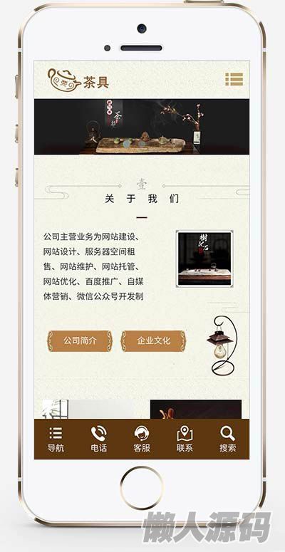 懒人源码 » 响应式茶叶茶道pbootcms网站模板 棕色复古茶具网站源码下载