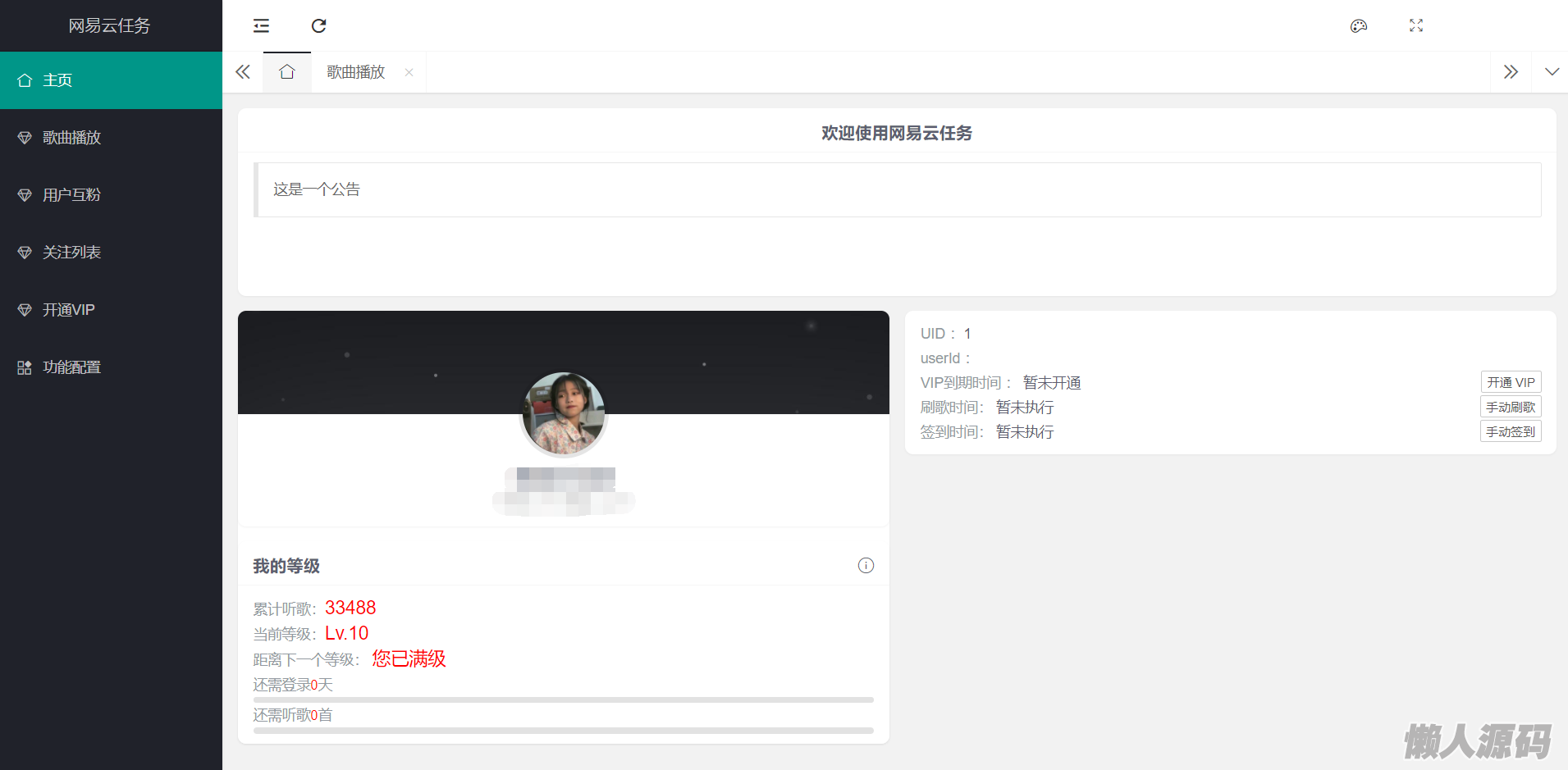 懒人源码 » 2022最新网易云代挂源码-每天300首