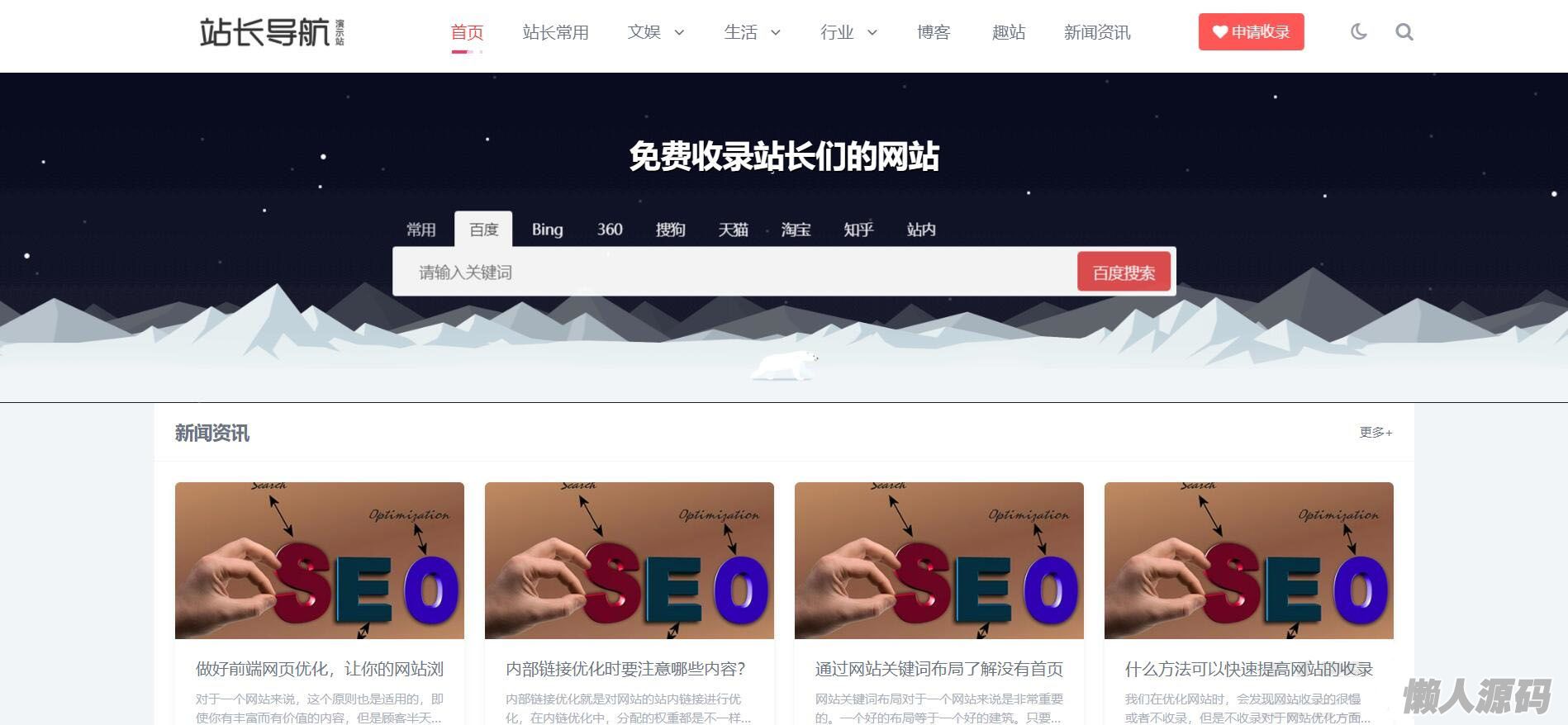 懒人源码 » 响应式站长网址导航类pbootcms网站模板(自适应手机端)html5导航网站源码下载