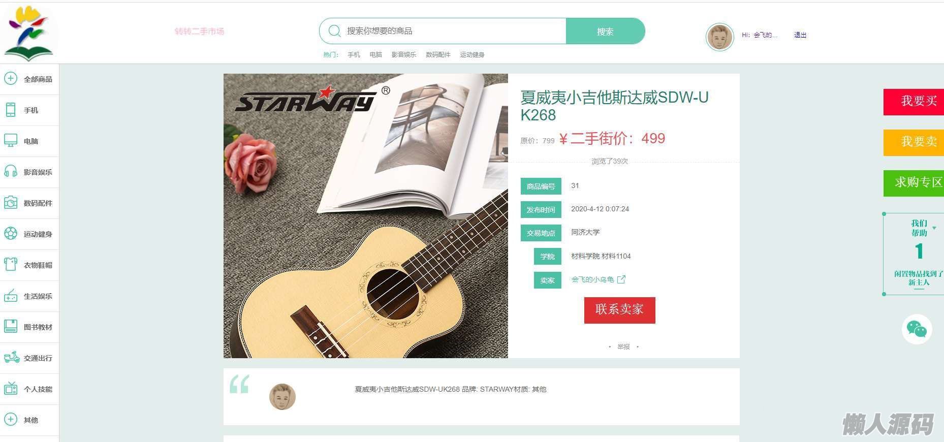 懒人源码 » 校园转转二手市场源码/Java二手交易市场整站源码
