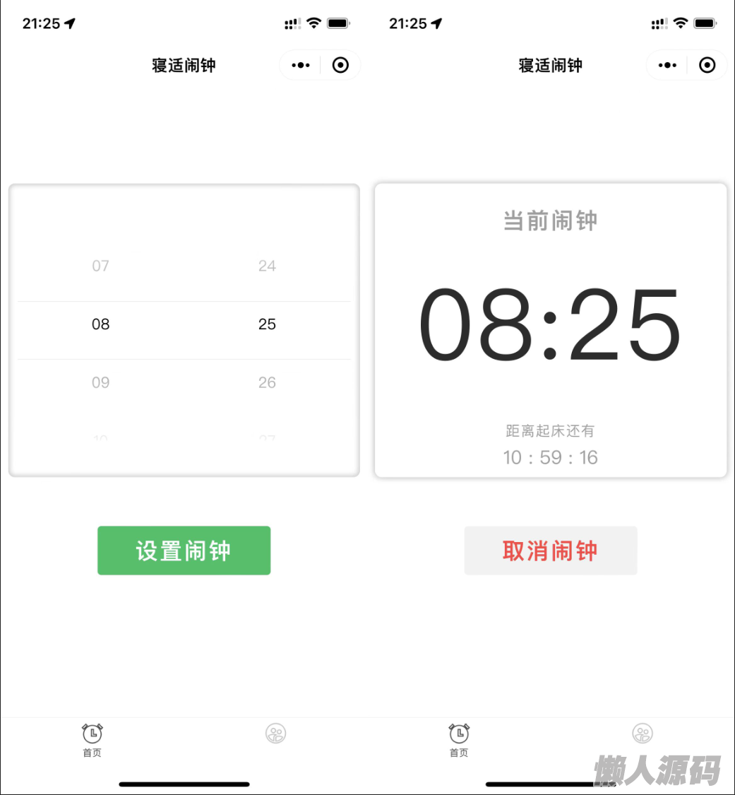 懒人源码 » 云开发寝适闹钟微信小程序源码