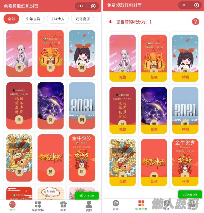 懒人源码 » 微信红包封面小程序 | 带后端源码
