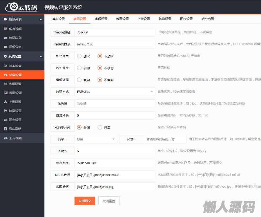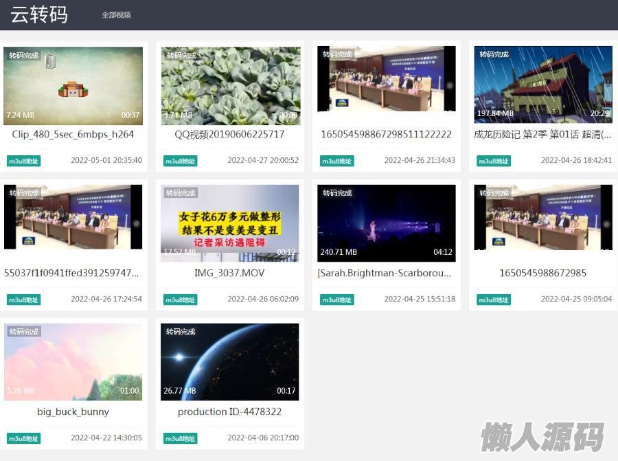 懒人源码 » 2022 php云切片程序转码 | m3u8生成程序开源源码 附教程