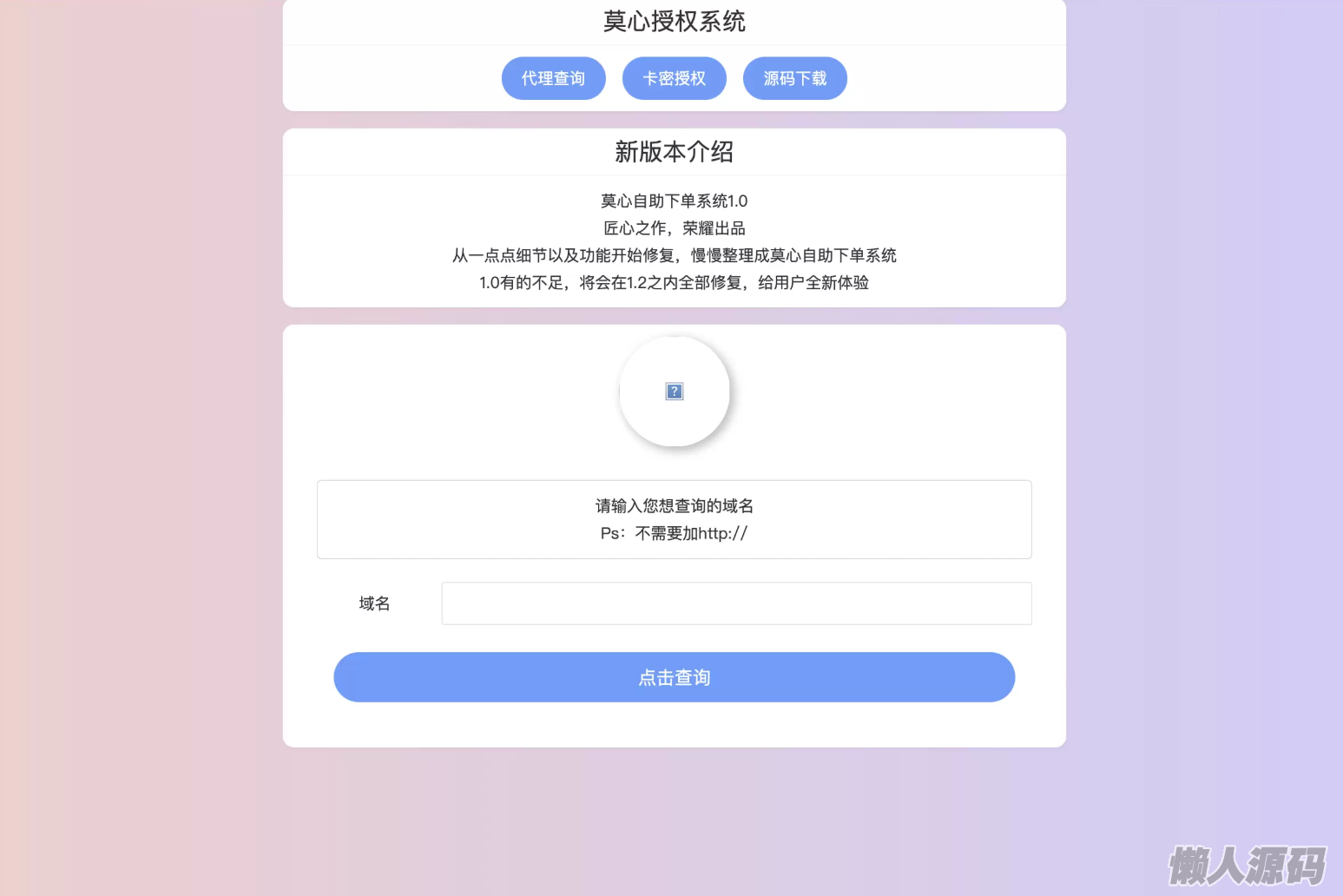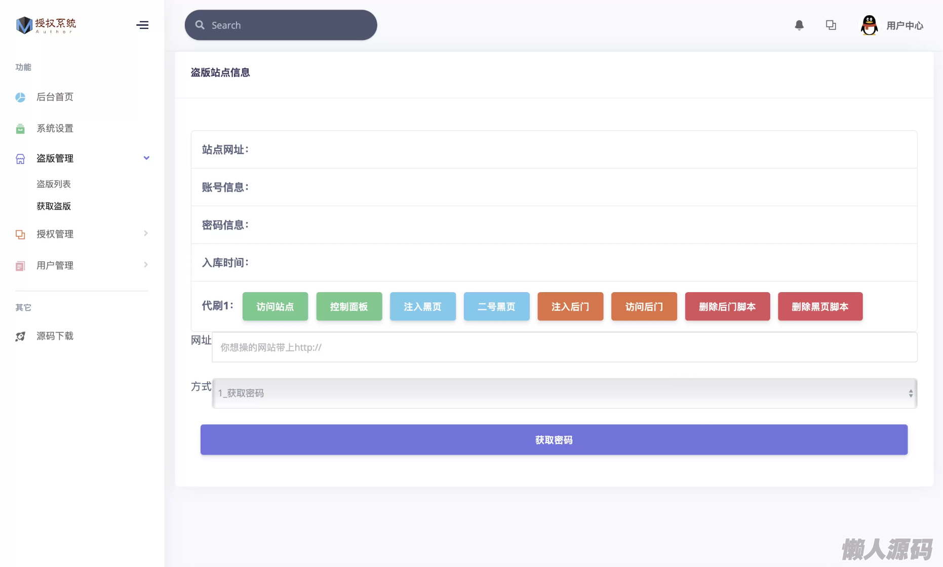 懒人源码 » 最新版莫心授权系统 | 一键入库大马 | 代理商功能