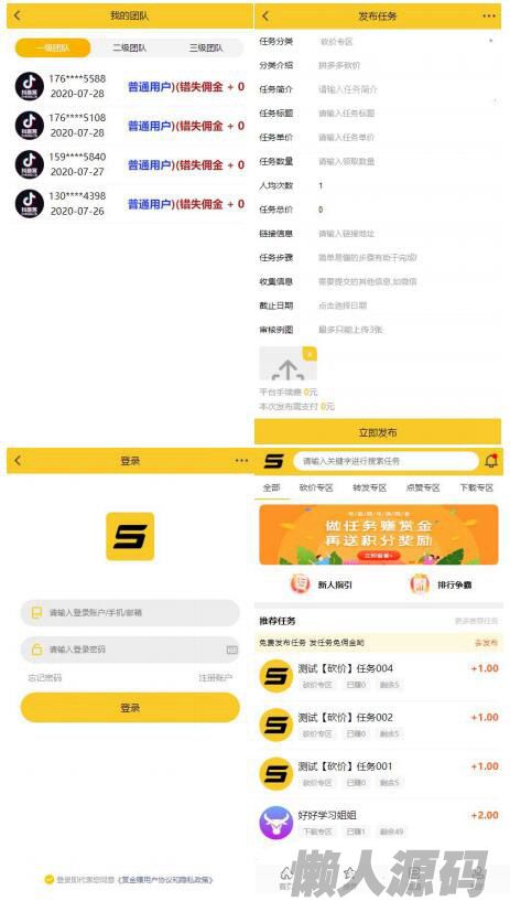 懒人源码 » 仿悬赏猫任务平台源码黄色UI界面完美运营版,可直接封装APP | ThinkPHP