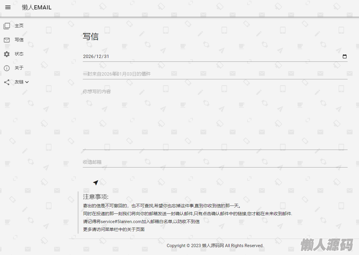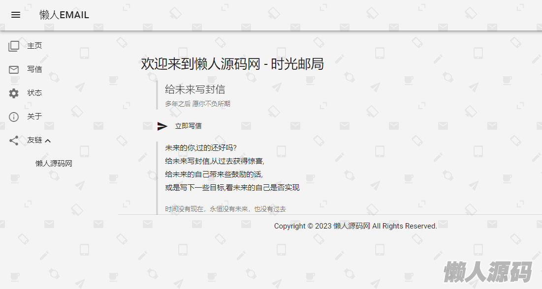 懒人源码 » 2023最新时光邮局系统PHP源码 | 时光信箱 | 为未来的自己写封信+美化版