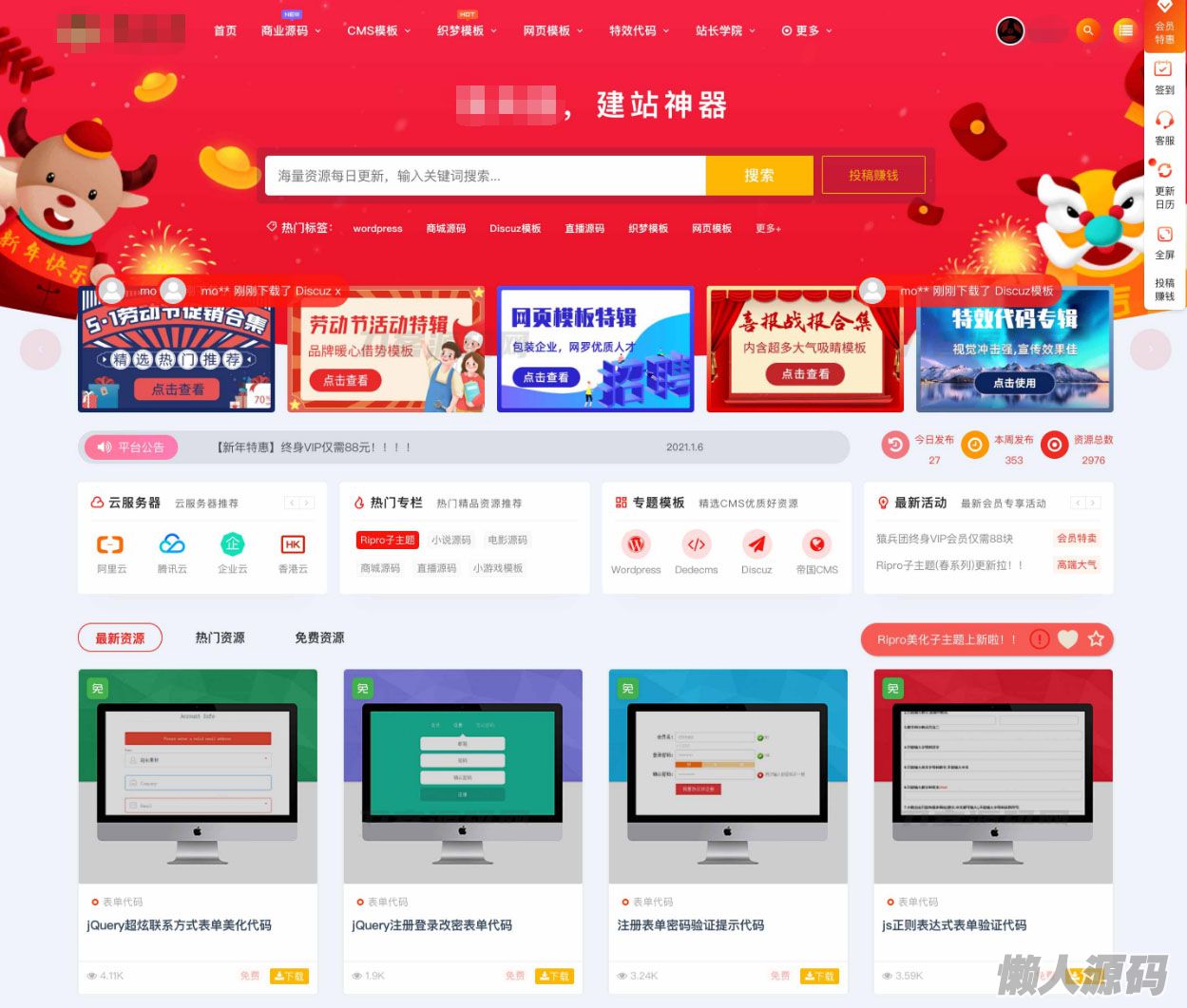 懒人源码 » 最新RiPro主题美化高端设计素材视频资源素材下载子主题包源码