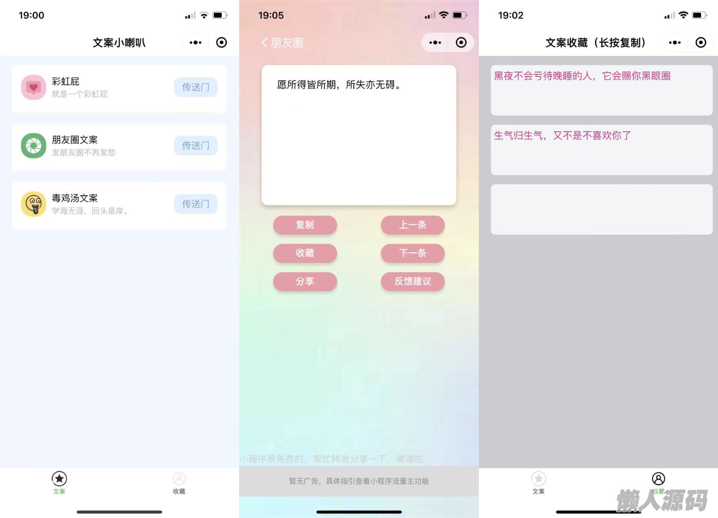 此 文案小程序 主要功能为分享各种有趣幽默的文案