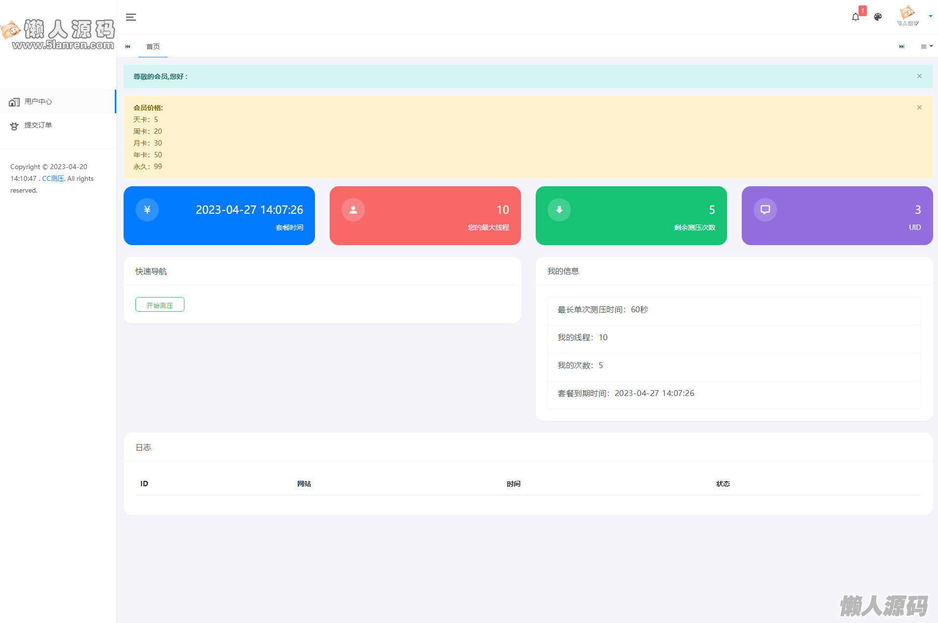 懒人源码 » 最新网站服务器压力测试系统源码 前后端全开源