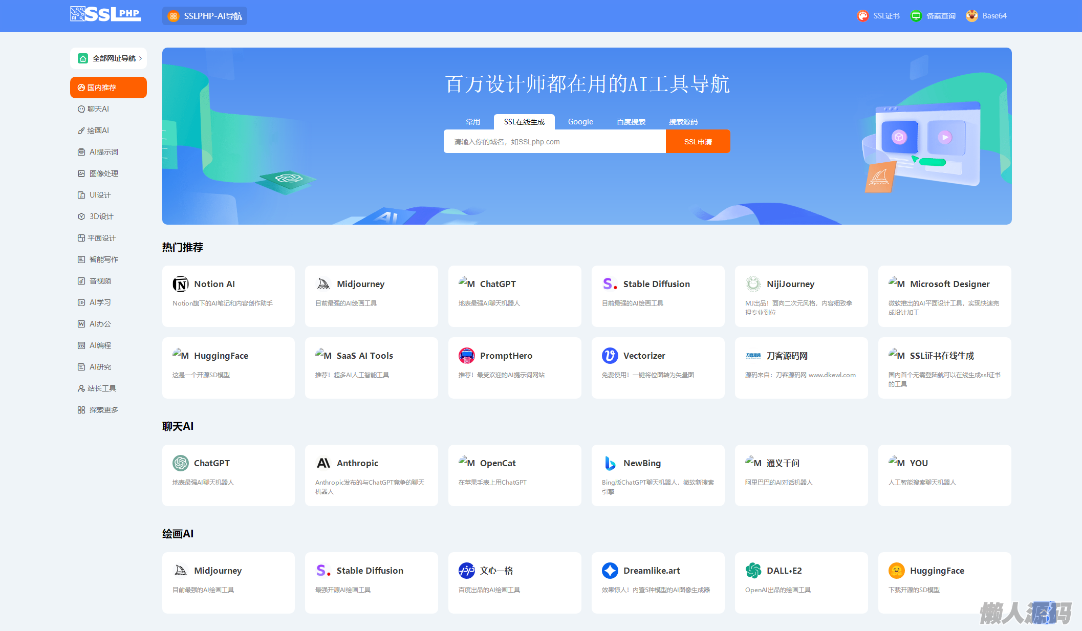 懒人源码 » 2023全新UI的AI网址导航系统源码 基于Thinkphp6框架