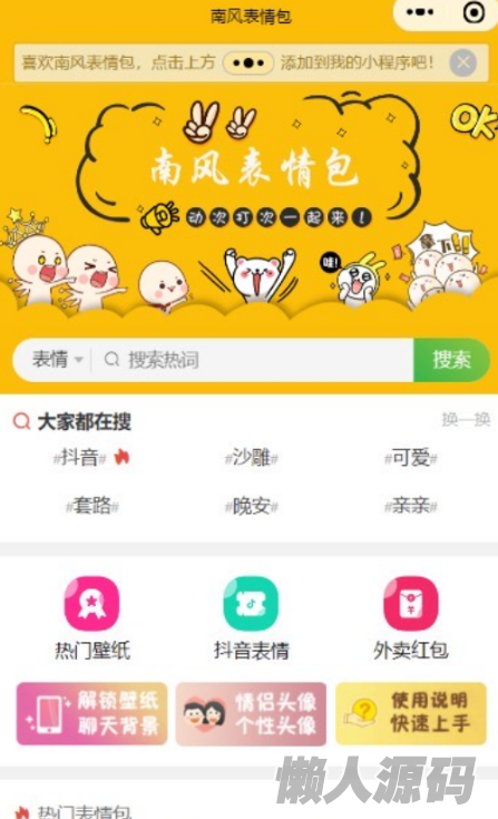6.小程序的功能:表情包+壁纸+外卖+流量主+采集+后台上传表情包功能,启动,带后台