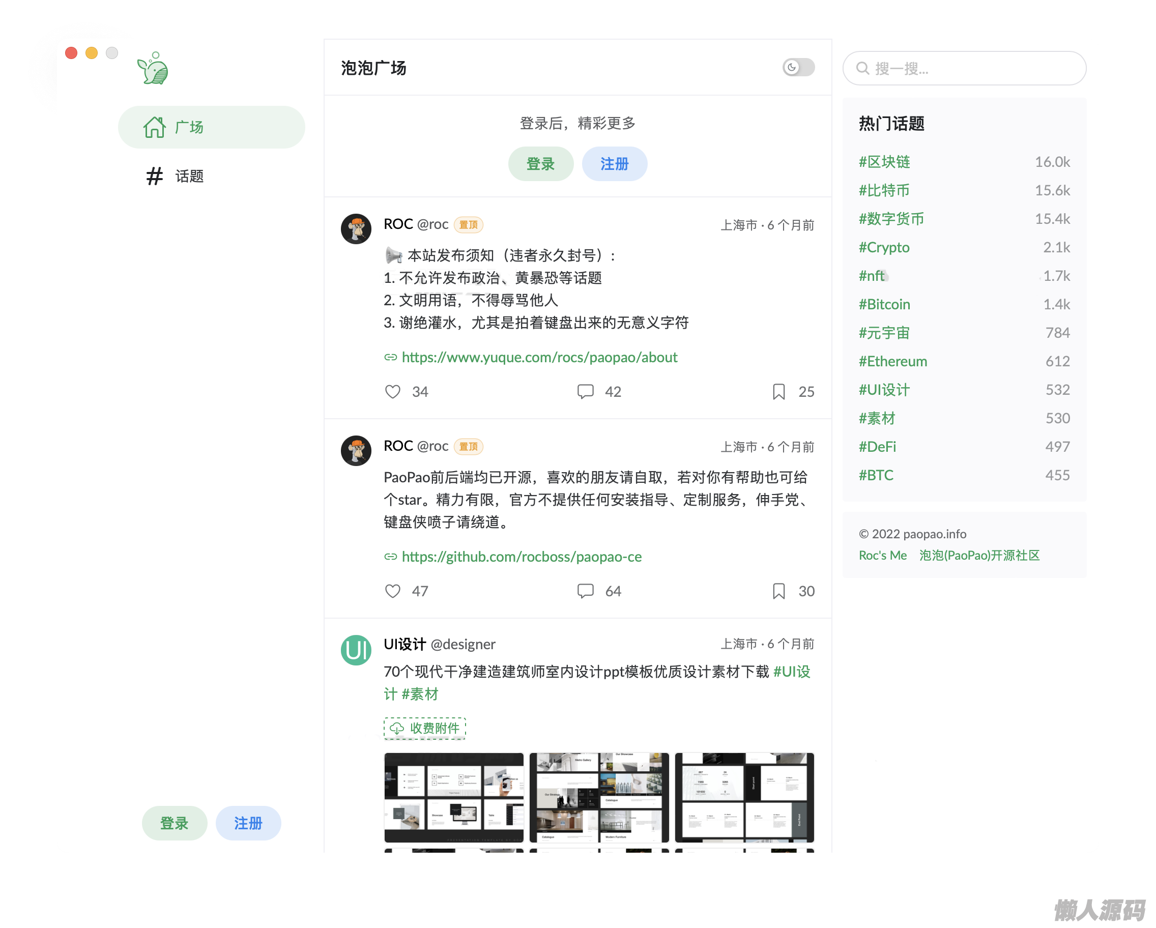 懒人源码 » PaoPao泡泡清新文艺的微社区系统源码