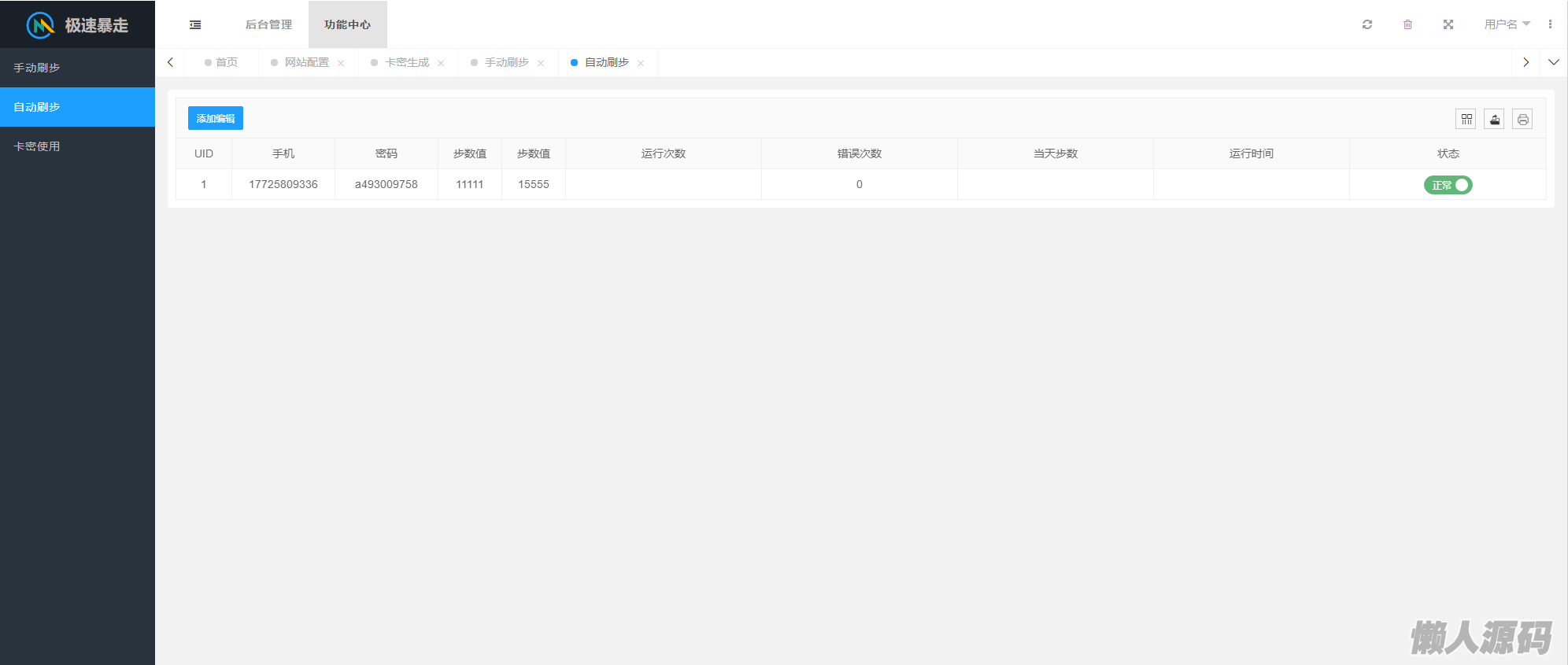 懒人源码 » 2023最新急速暴走小米运动自动刷步卡密版PHP源码