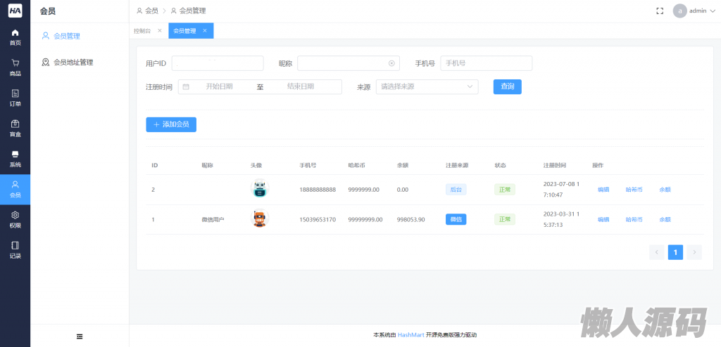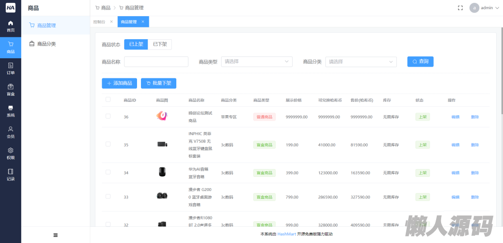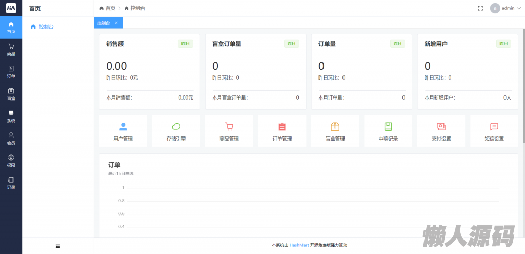 HashMart ( 哈希玛特 )是开源的面向生产的、易开发的 盲盒系统 。它包含:首页看板、商品管理、订单管理、盲盒管理、系统管理、会员管理、权限管理、记录管理,并且拥有完善的搭建使用手册和接口文档。是帮助您快速落地盲盒 商城系统 的。