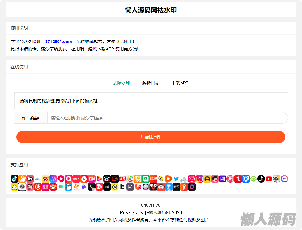 懒人源码 » 全新抖音快手小红书去水印系统网站源码 | 支持几十种平台