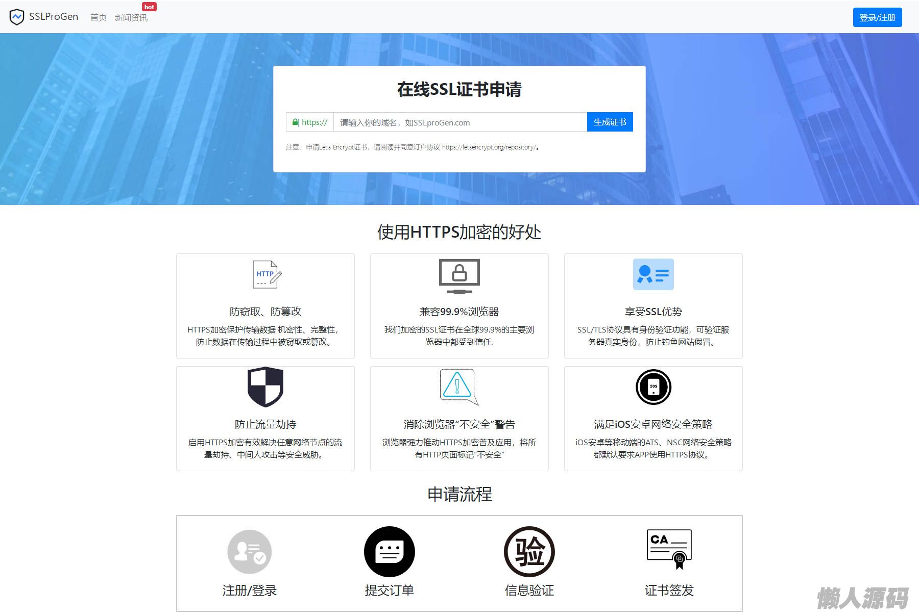 懒人源码 » 2023最新SSL证书在线申请系统源码 | 支持API接口