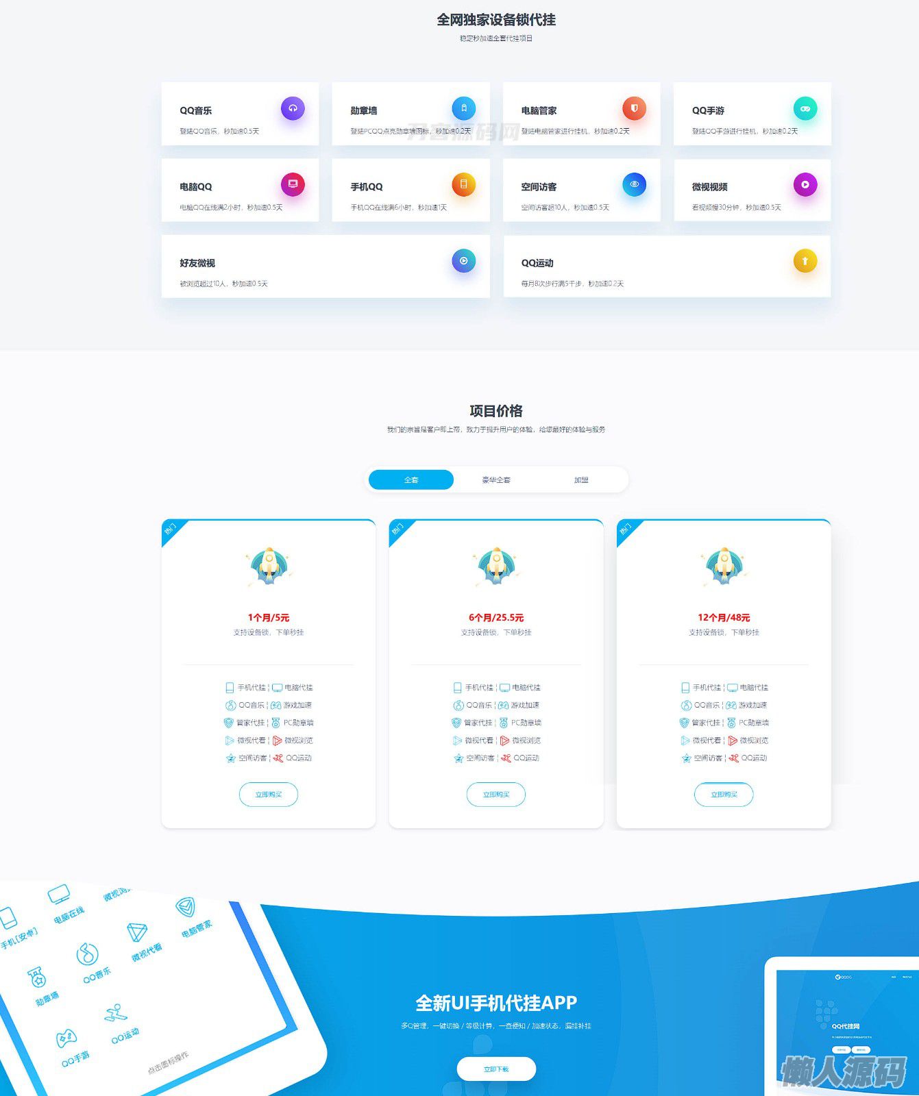 懒人源码 » QQ代挂网站前端美化模板源码