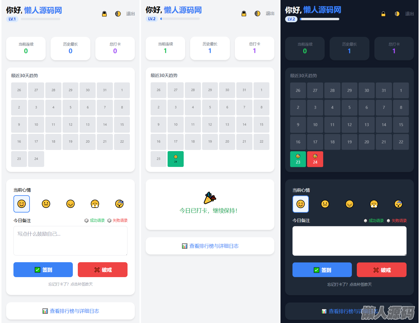 戒了么是一个轻量、纯 PHP 的每日戒色签到程序,面向正在自律、挑战的人,无需用户中心,通过本地 数据库 保存数据 记录每日签到状态