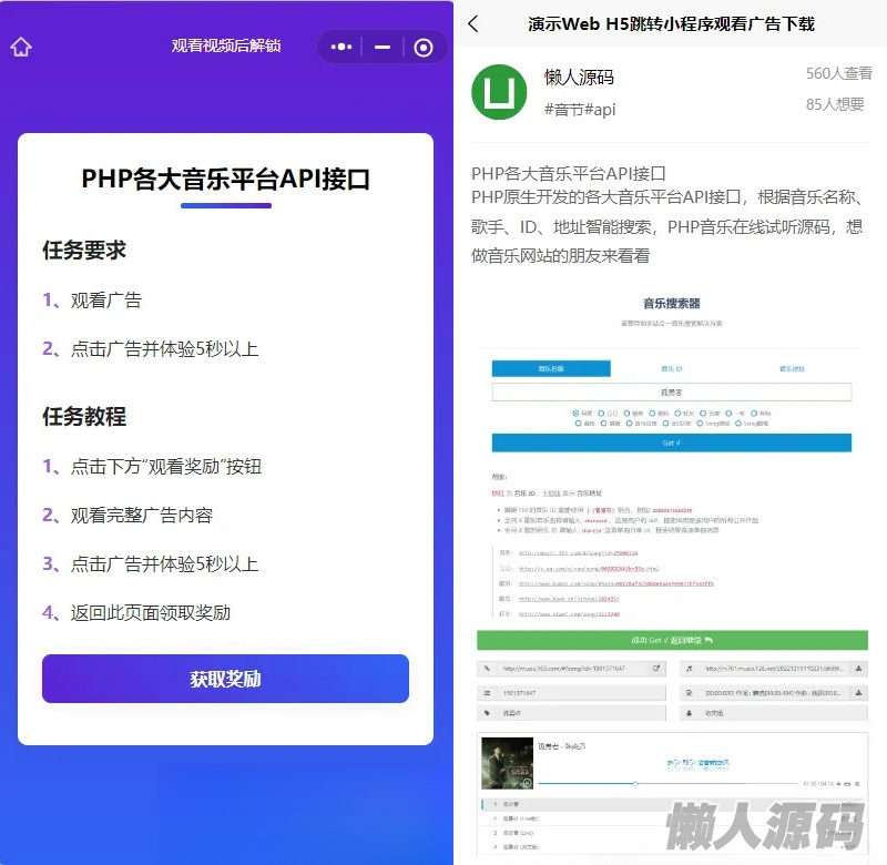 懒人源码 » 演示Web H5跳转小程序观看激励广告后下载,实现流量变现赚取广告收益