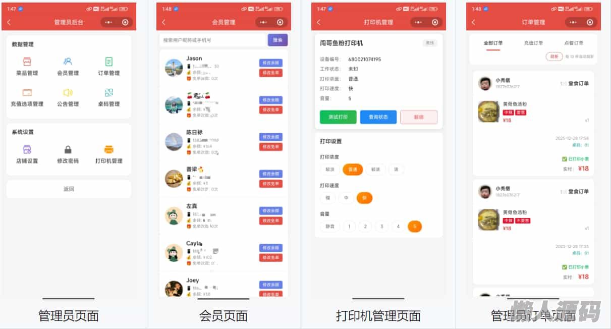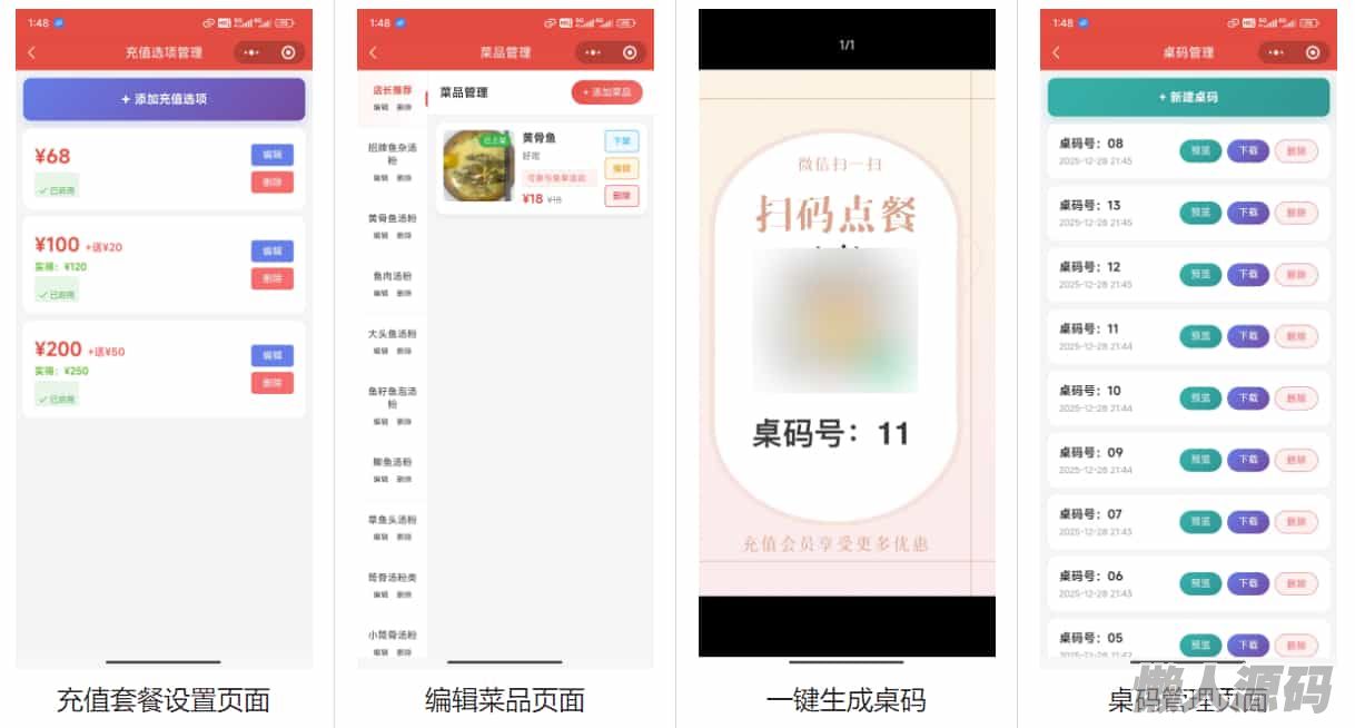 功能亮度:一键生成桌码、打印菜单小票(不需要人工手写菜单)
