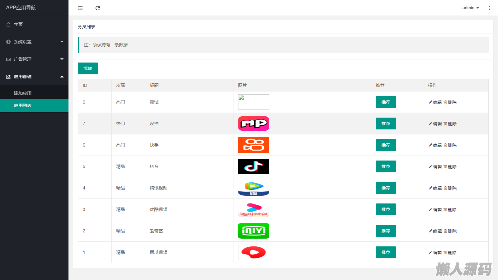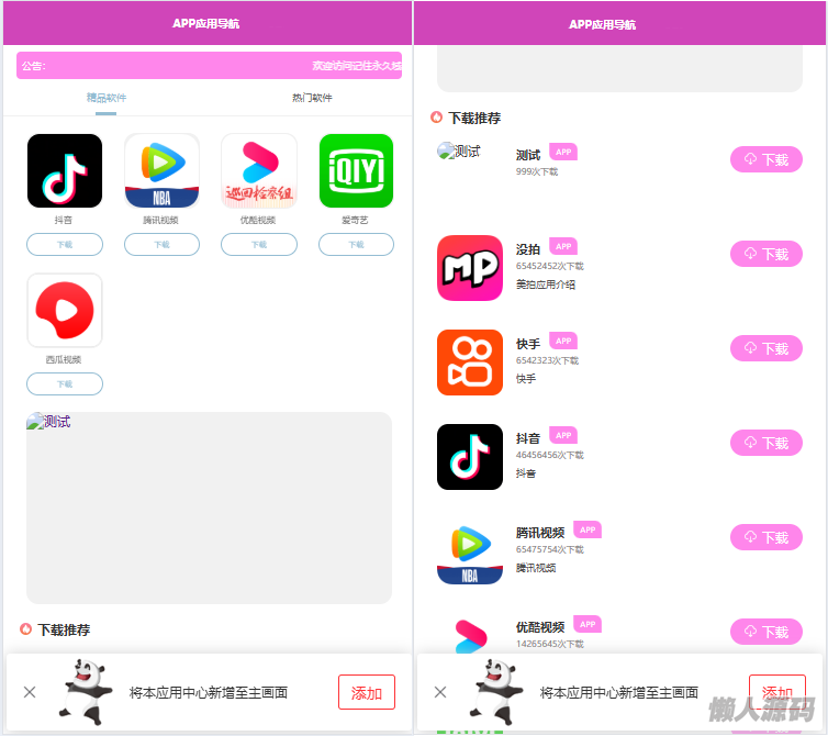 这款源码安装非常便捷干净,后台添加应用及轮播广告也非常方便,网站自适应 PC+ 手机自适应