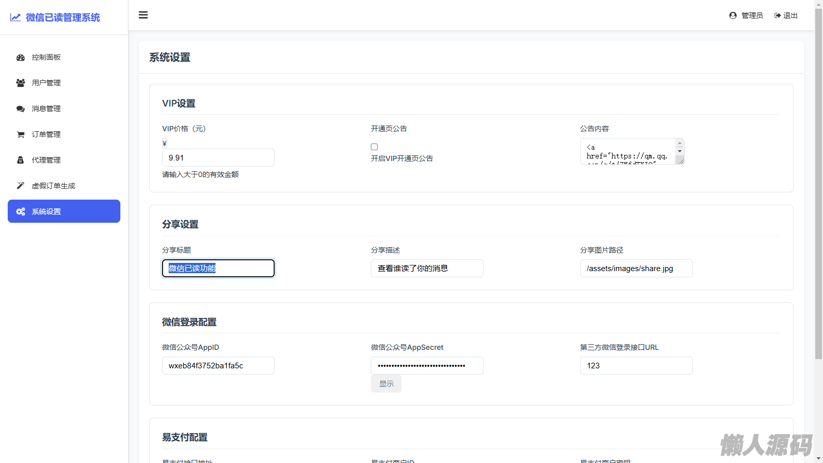懒人源码 » 微信已读管理系统源码