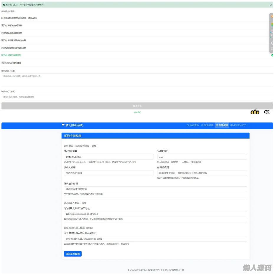 懒人源码 » 修复版 梦幻企业投诉1.0版本系统,模仿微信投诉
