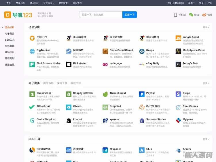 懒人源码 » WordPress主题导航123升级模版源码主题不限域名网址导航