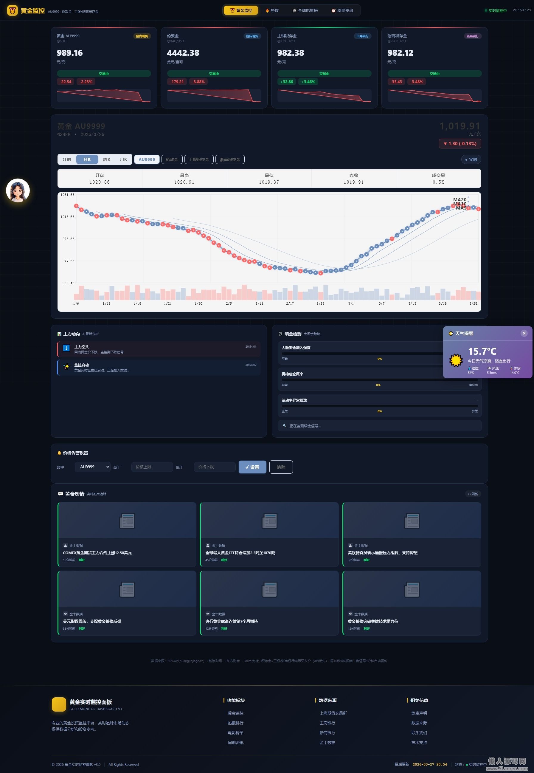 新版 黄金价格 监控源码(K线图模块,黄金舆情模块,AI 智能客服 )
