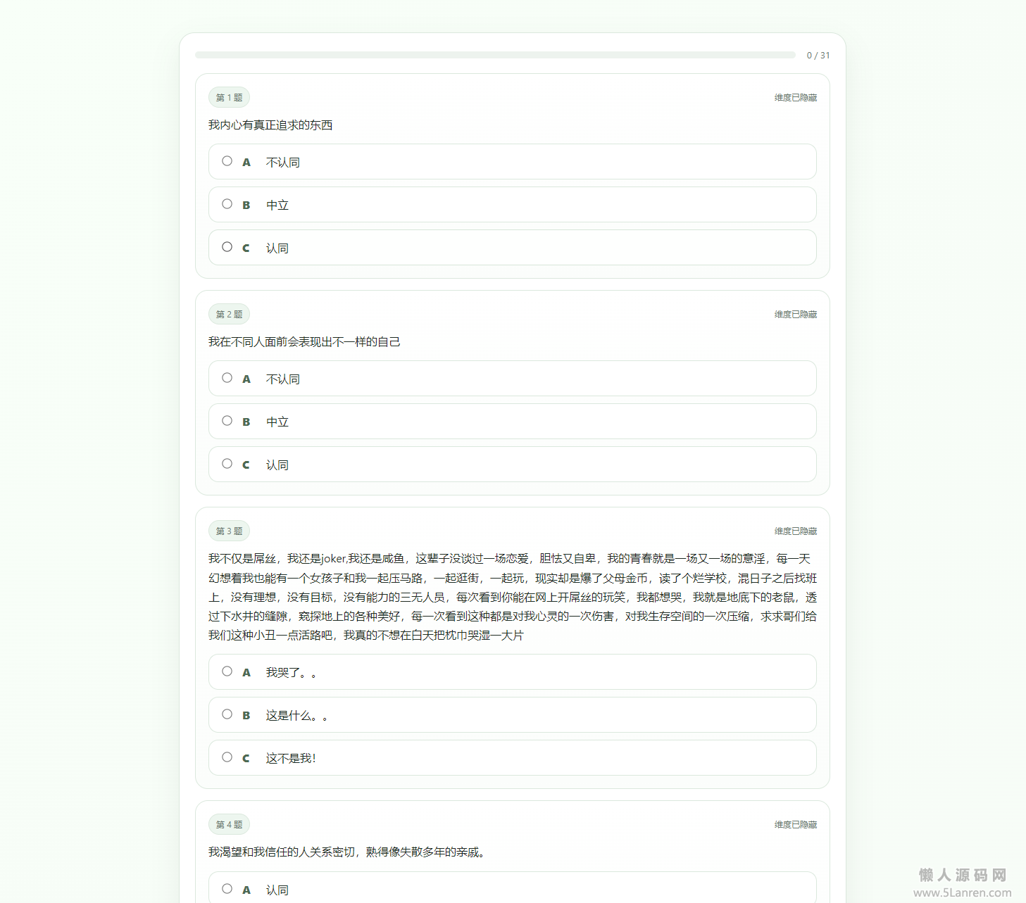 这是一款近比较火的SBTI人格测试源码,可以去做题选出来自己的人格,比如、尤物,还是比较不错的