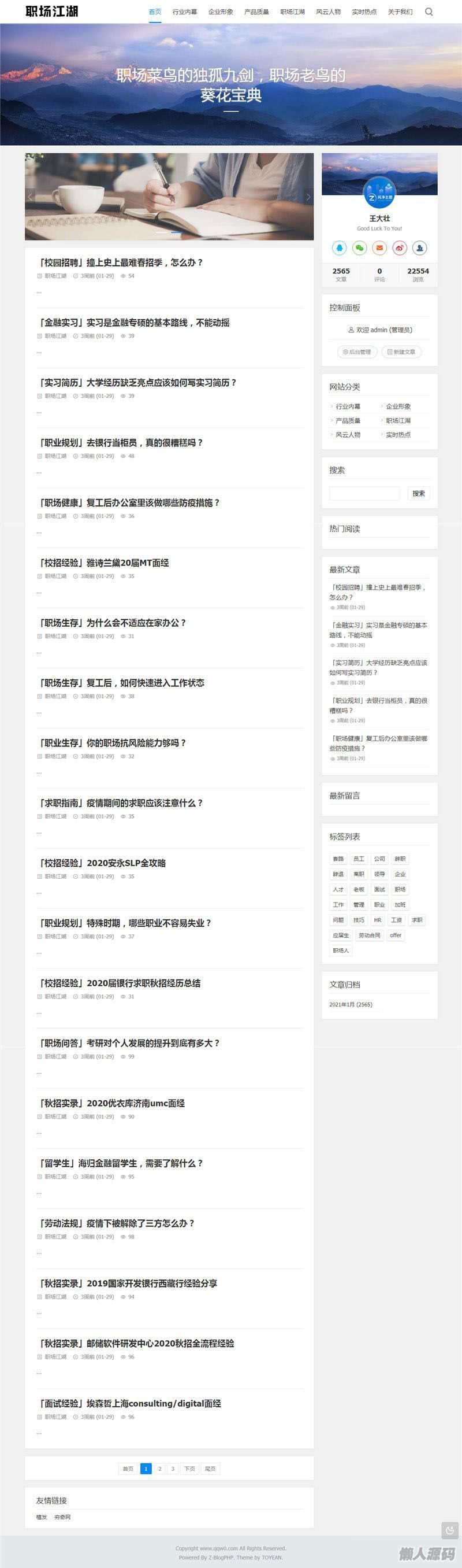 懒人源码 » ZBlogPHP文章资讯职场话题博客网站源码整站资源自带2000+数据