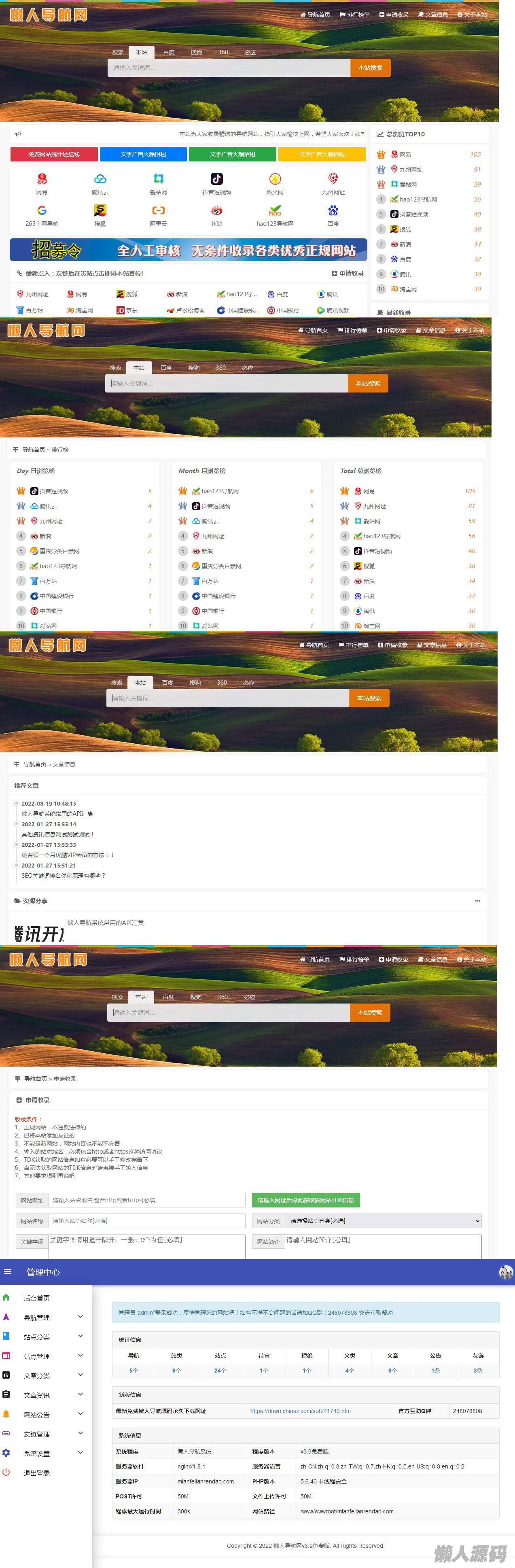 懒人源码 » php开发的流行站长导航系统收录源码,样式很不错,完全开源