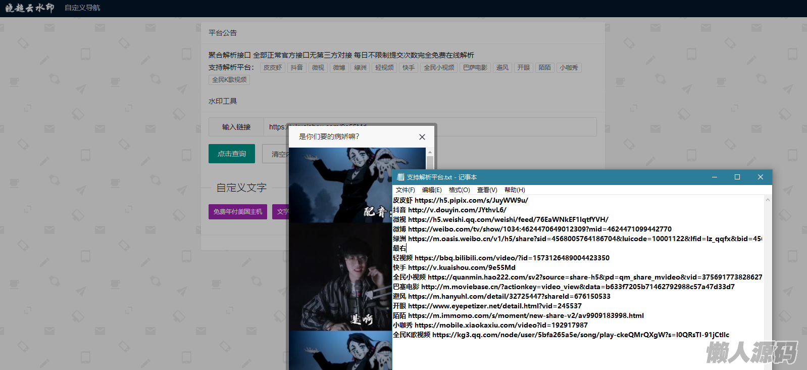懒人源码 » php开发的聚合短视频去水印解析程序源码