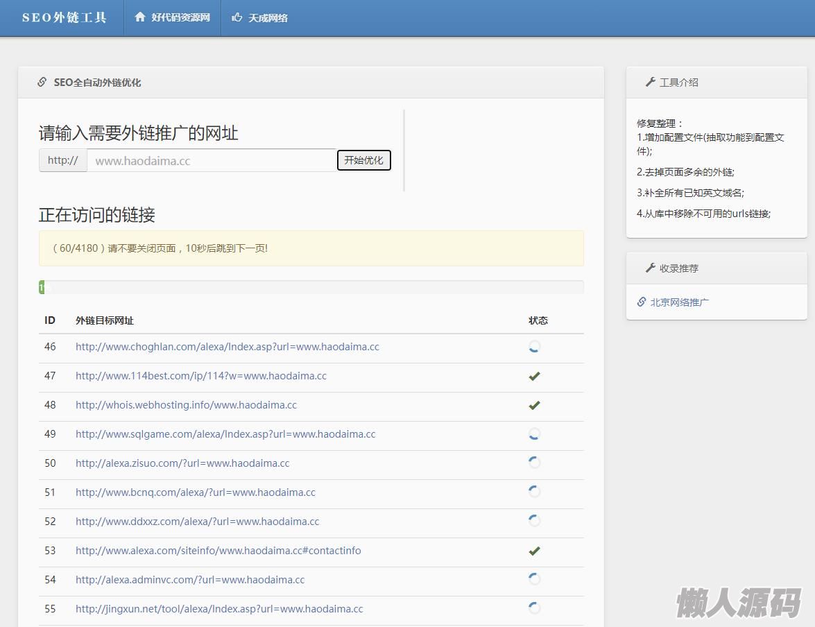 懒人源码 » 【亲测】php开发的SEO外链工具源码,可免费在线批量群发外链