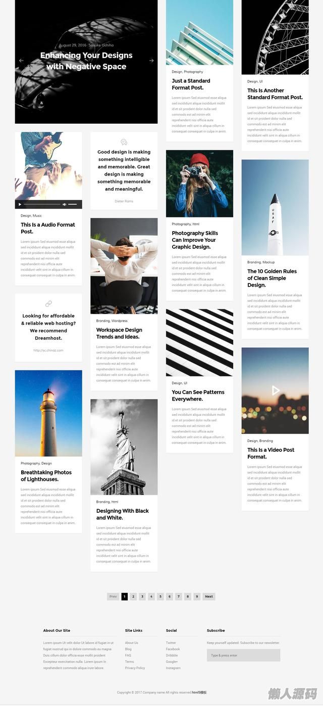 懒人源码 » 一款非常好的瀑布流博客网站模板,自适应布局
