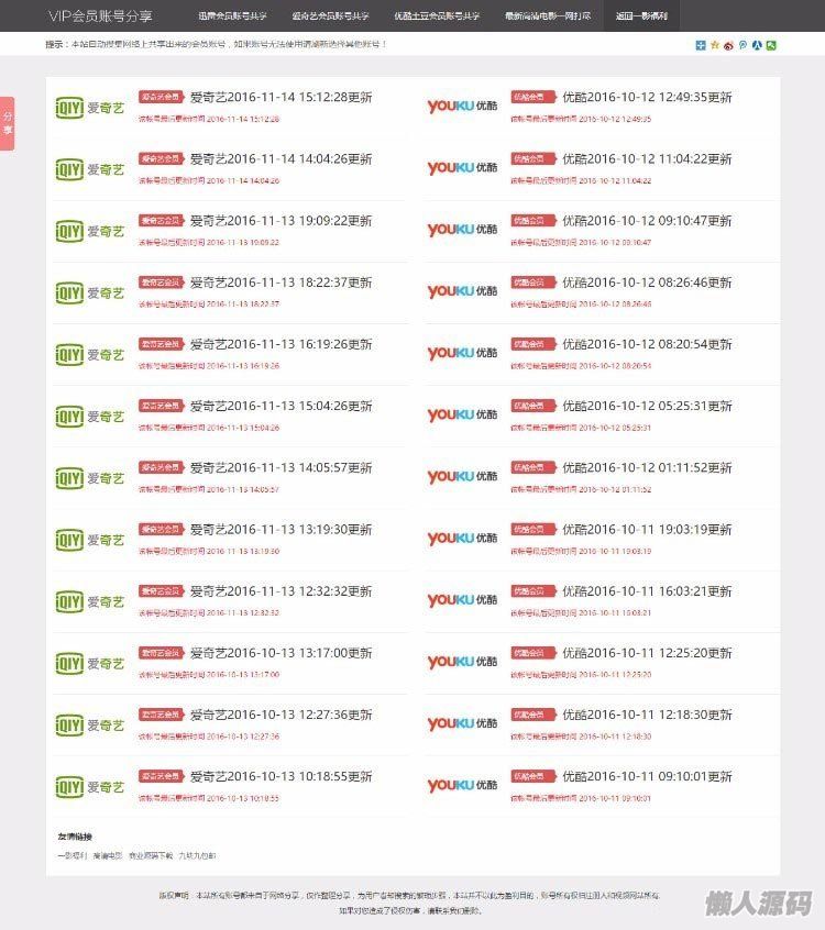 影视VIP账号资源分享网站PHP源码_爱奇艺优酷迅雷账号分享网站,全自动采集发布
