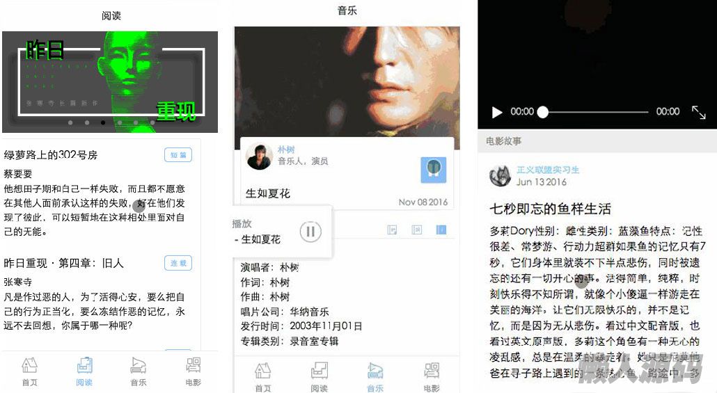这是一款多功能带试听功能的小程序模板源码,可以在线边读边听文章,还可以在线试听音乐,收看视频等等,大家可以看演示图。
