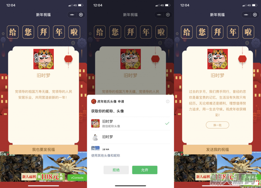 用户可以直接发送祝福语给好友,分享的时候会显示用户名字