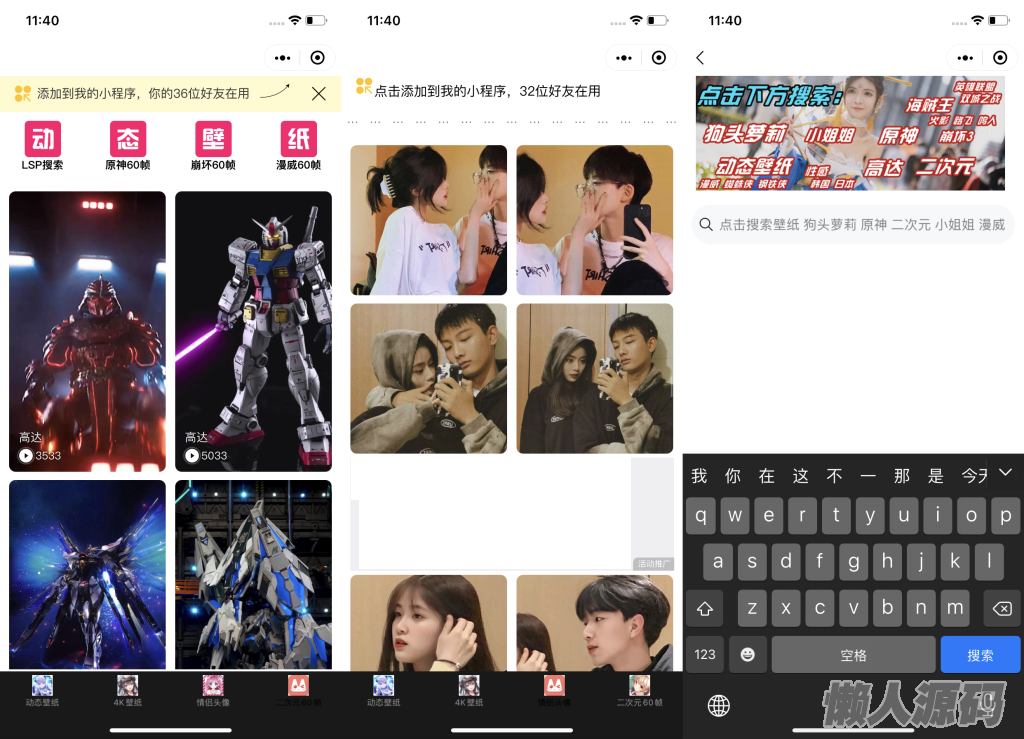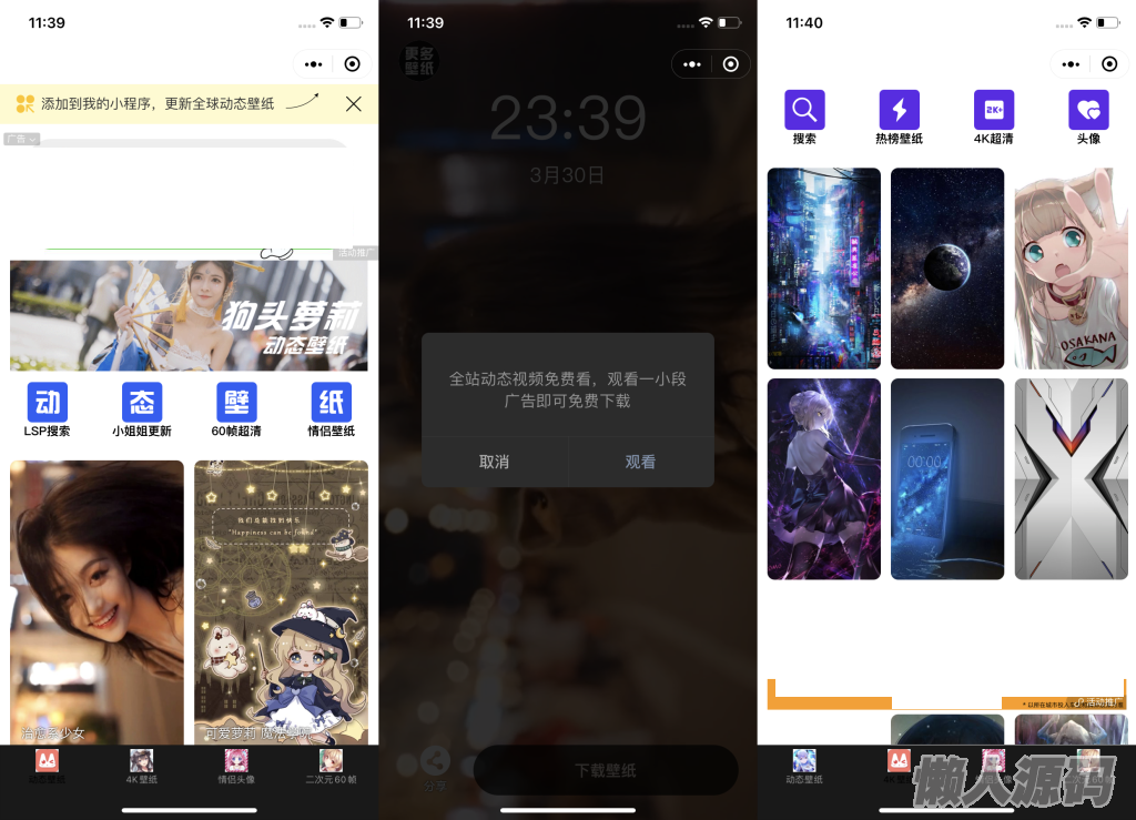 懒人源码 » 宅男壁纸大全微信小程序源码-带动态壁纸支持多种流量主