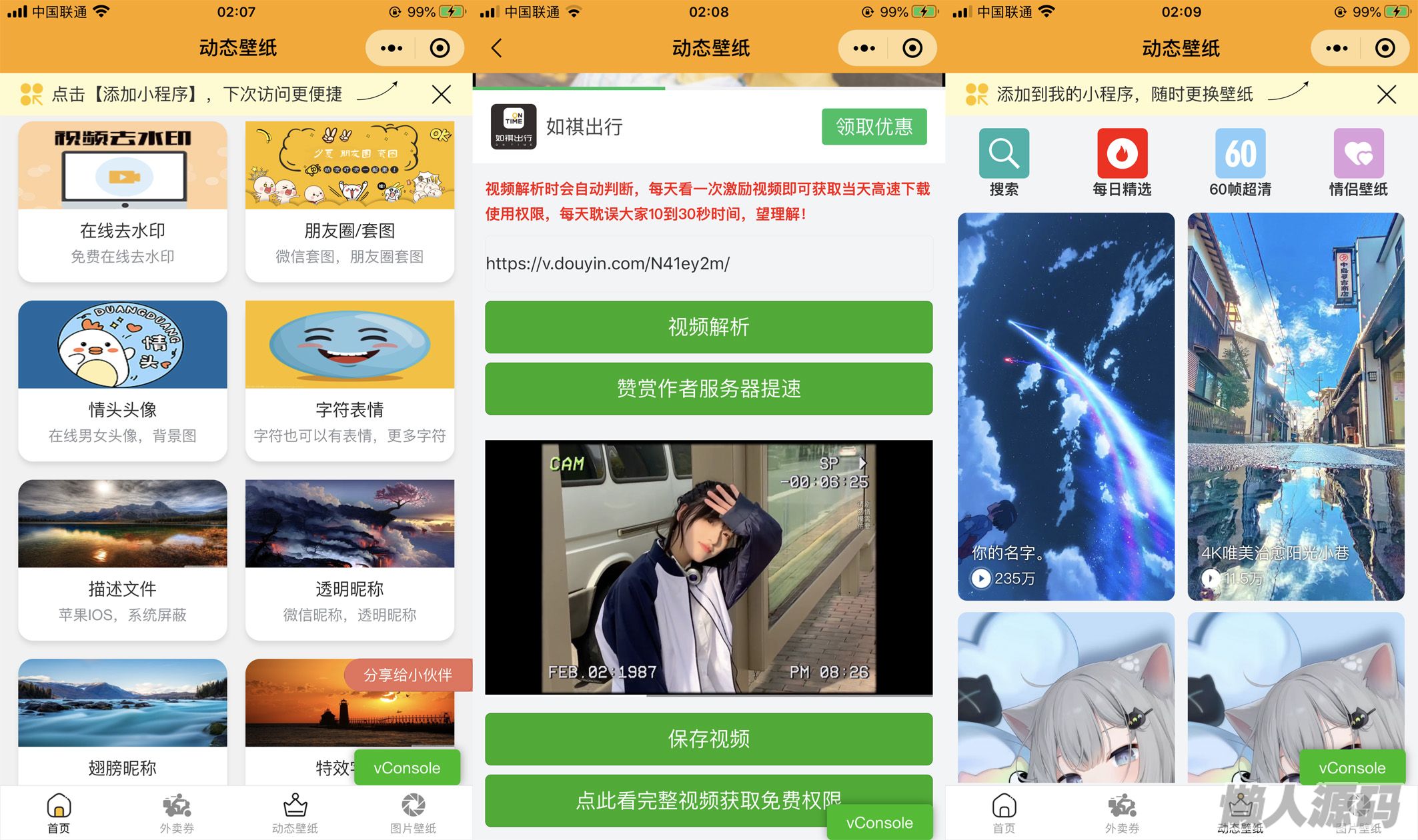动态视频壁纸多功能工具箱微信小程序源码,支持外卖CPS和流量主